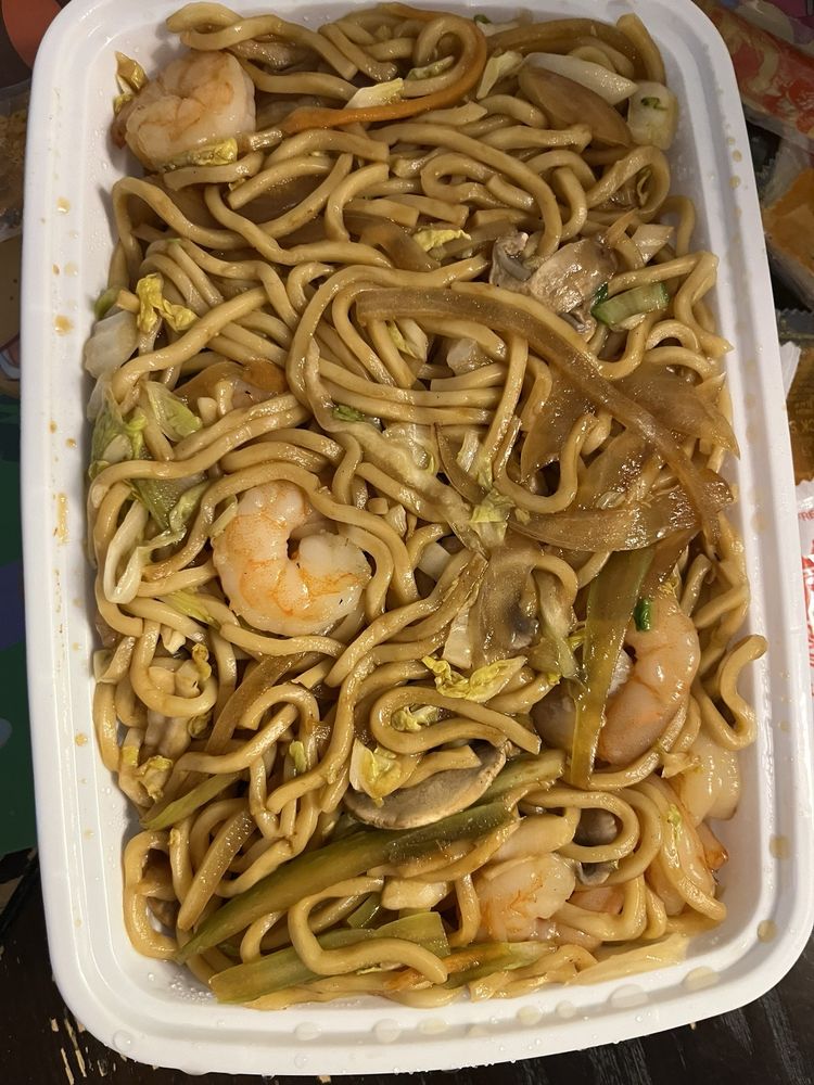 Fresh shrimp chop suey. Choice of rice or lo mein in various flavors, including vegetable, chicken, beef, pork, shrimp, crabmeat, or plain. Available in pint or quart sizes.